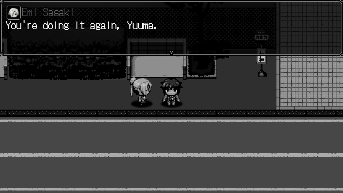 It currently contains the Prologue and Chapter 1, focusing on the investigation of the Sado Shoe Company. You will play through the start of Yuuma's journey, meet his first allies, and uncover the first "glitch" in reality. The full story is still in development.